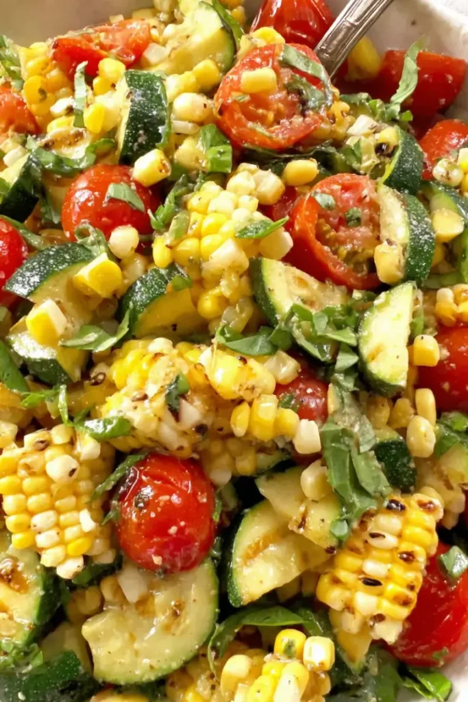 This Amazing Corn Zucchini Salad is a refreshing and colorful summer dish made with sweet corn, tender zucchini, cherry tomatoes, fresh herbs, and a zesty lemon-garlic dressing. Perfect for barbecues, picnics, or light lunches, it delivers bright flavors and crisp textures in every bite.