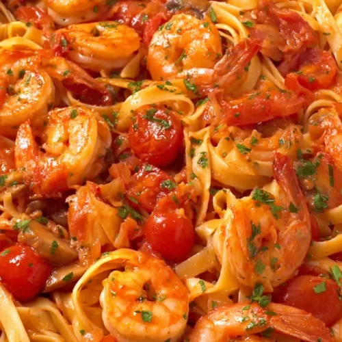 Fresh Garlic Shrimp Pasta proves that simple ingredients can create an incredibly satisfying meal. The combination of tender shrimp, juicy tomatoes, fresh herbs, and creamy mozzarella makes every bite vibrant and comforting.