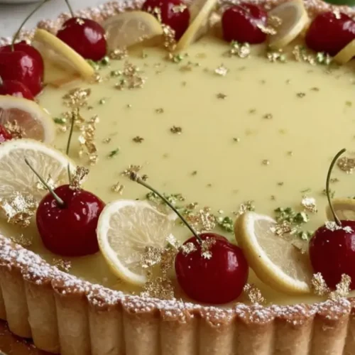 This Amazing Lemon Tart with Fresh Cherries and Gold Leaf is both a feast for the eyes and a delight for the palate. Its balance of tangy lemon, buttery crust, and sweet cherries, finished with luxurious gold accents, makes it an ideal dessert for any special occasion. With simple steps, thoughtful ingredients, and a little chill time, you can create a dessert that impresses every guest.