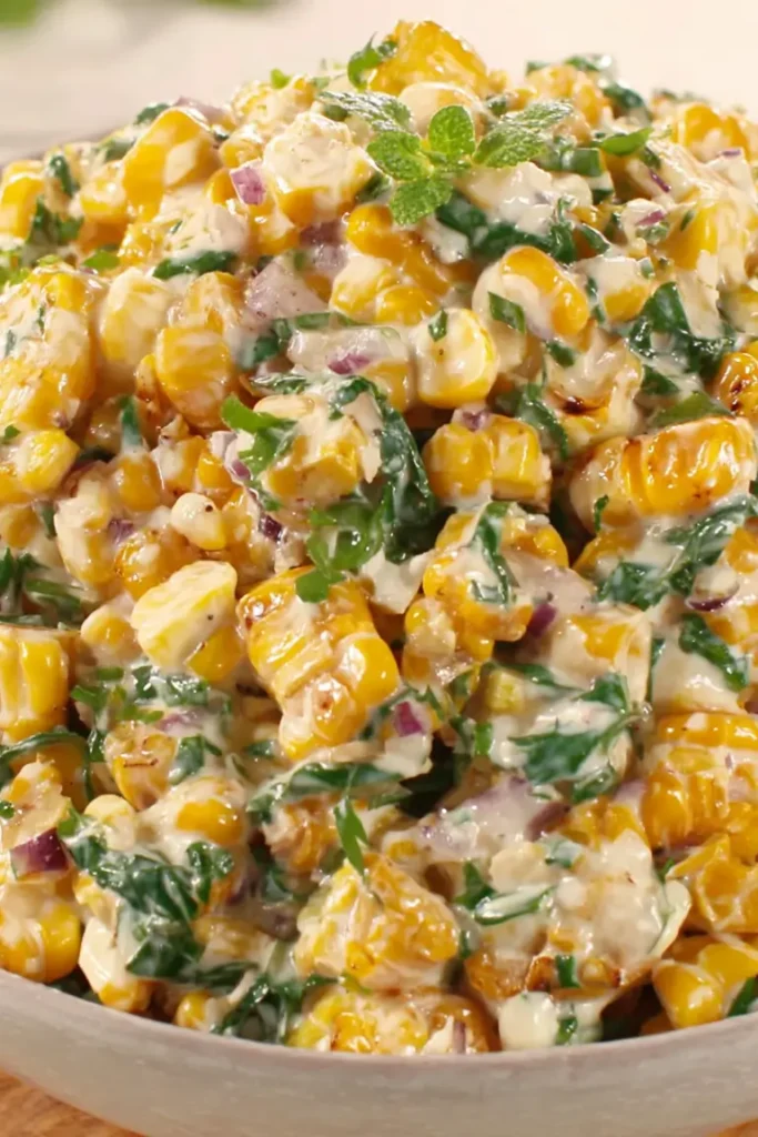 This Amazing Mexican Corn Salad with Roasted Corn Mexican Corn Salad with Roasted and Boiled Corn is a celebration of texture and flavor. The combination of sweet boiled corn and smoky roasted kernels creates something truly special. Creamy dressing, fresh vegetables, and bold spices bring everything together into a dish that feels both comforting and refreshing.
