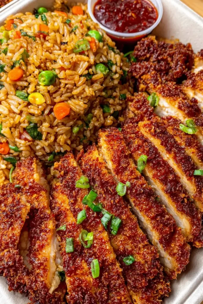 • Substitutions: Use brown rice or cauliflower rice for a healthier option, and you can bake the chicken instead of frying to reduce oil.