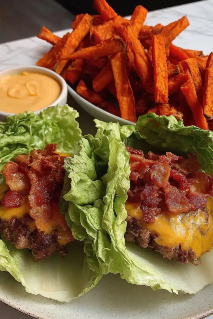 The Healthy Lettuce Cheeseburger with Sweet Potato Fries is a guilt-free twist on the classic burger-and-fries meal. Instead of a traditional bun, crisp lettuce leaves hold juicy beef patties topped …