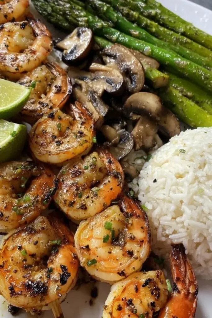 Amazing Grilled Shrimp Skewers with Rice & Veggies