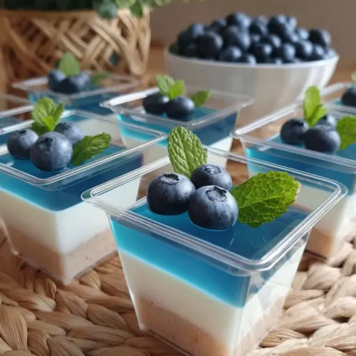 Because the recipe uses simple ingredients and requires no baking, it’s an ideal choice for beginners and busy home cooks. Served in clear cups and topped with fresh blueberries and mint leaves, these dessert cups create a stunning presentation that feels elegant yet effortless.