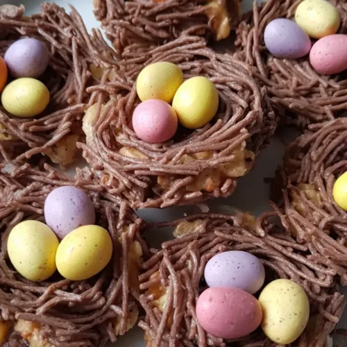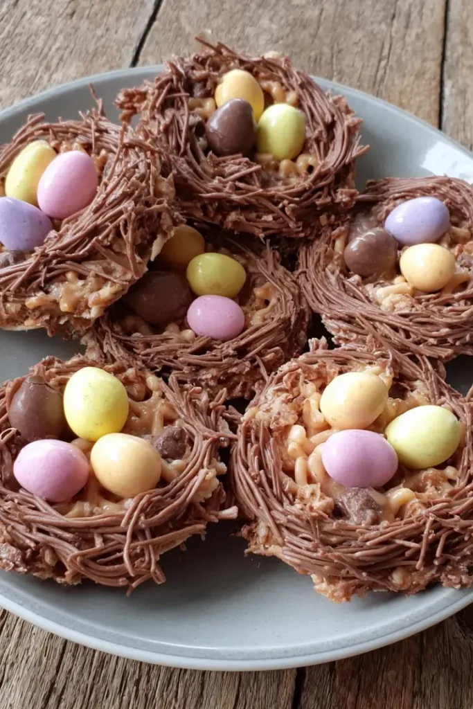 - Work quickly: The chocolate mixture can start to set fast, so shape the nests right after mixing.
