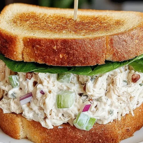 This sandwich has remained popular for generations because it’s both simple and delicious. The combination of creamy chicken salad and crisp vegetables creates a balanced texture that feels light yet satisfying.