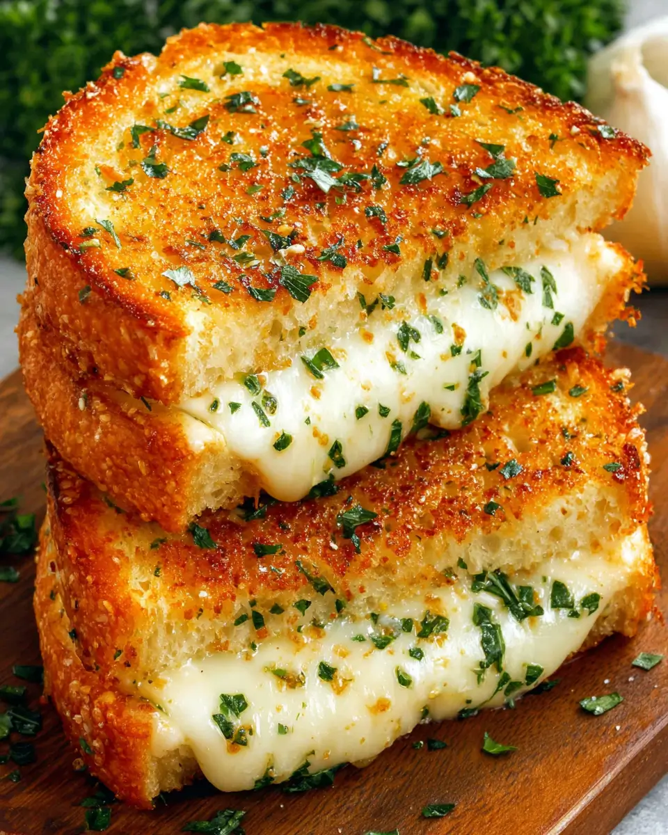 The garlic butter crisps the bread to golden perfection while the cheese melts into a stretchy, creamy center that’s impossible to resist.