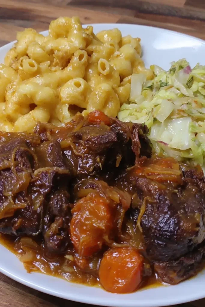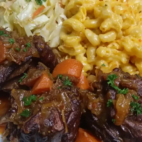 Easy Jamaican Oxtail with Mac and Cheese Plate is the perfect comfort meal that brings together rich Caribbean flavors and creamy, satisfying sides. This dish combines slow-cooked, tender oxtail in a savory gravy with cheesy baked macaroni and a lightly sautéed cabbage for balance. Whether you’re cooking for a weekend family dinner or a special occasion, this hearty plate delivers bold flavor and comforting textures in every bite.