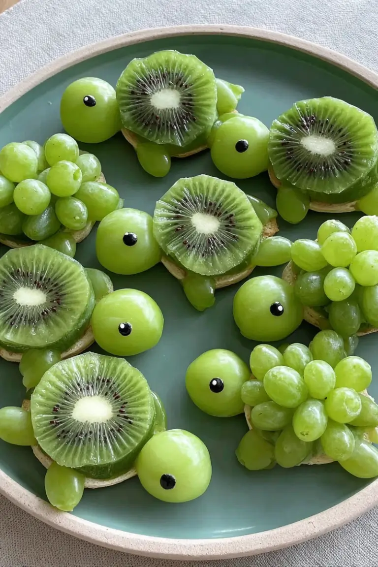 This adorable kiwi and green grape fruit turtles snack turns simple fresh fruit into a playful and healthy treat. Made with juicy grapes and vibrant kiwi slices, these cute turtle-shaped snacks are perfect for kids’ lunchboxes, parties, or quick after-school treats. Best of all, they take only a few minutes to assemble and require no cooking.