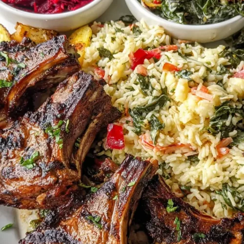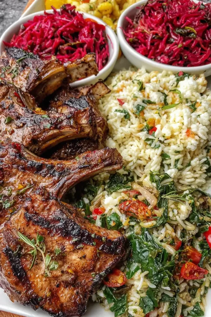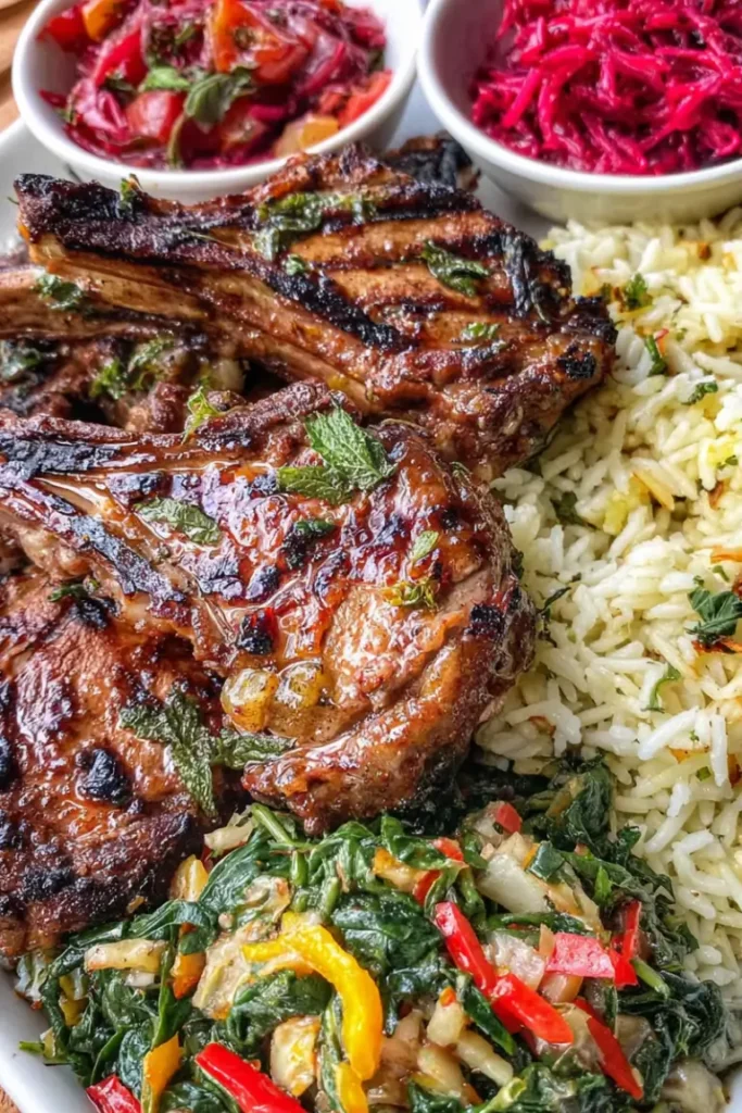 This recipe is a complete meal that feels both comforting and fresh. The lamb chops are marinated in warm spices and grilled to juicy perfection, while the sides add balance and texture.