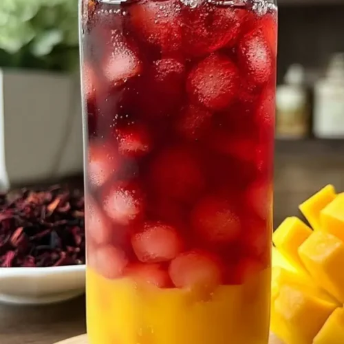 The Mango Hibiscus Iced Tea Refresher is a vibrant, fruity drink that blends sweet mango purée with tangy hibiscus tea for a refreshing beverage that looks as beautiful as it tastes. This easy recipe creates a naturally colorful layered drink that’s perfect for warm afternoons, brunch gatherings, or whenever you need a cool, energizing treat without caffeine or alcohol.