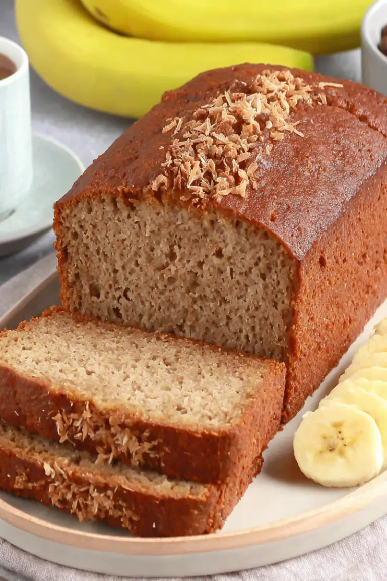 First, it’s naturally sweetened primarily with ripe bananas, which give it deep flavor and natural moisture. The coconut crumble adds a slightly crisp, cinnamon-kissed topping that contrasts beautifully with the soft crumb.