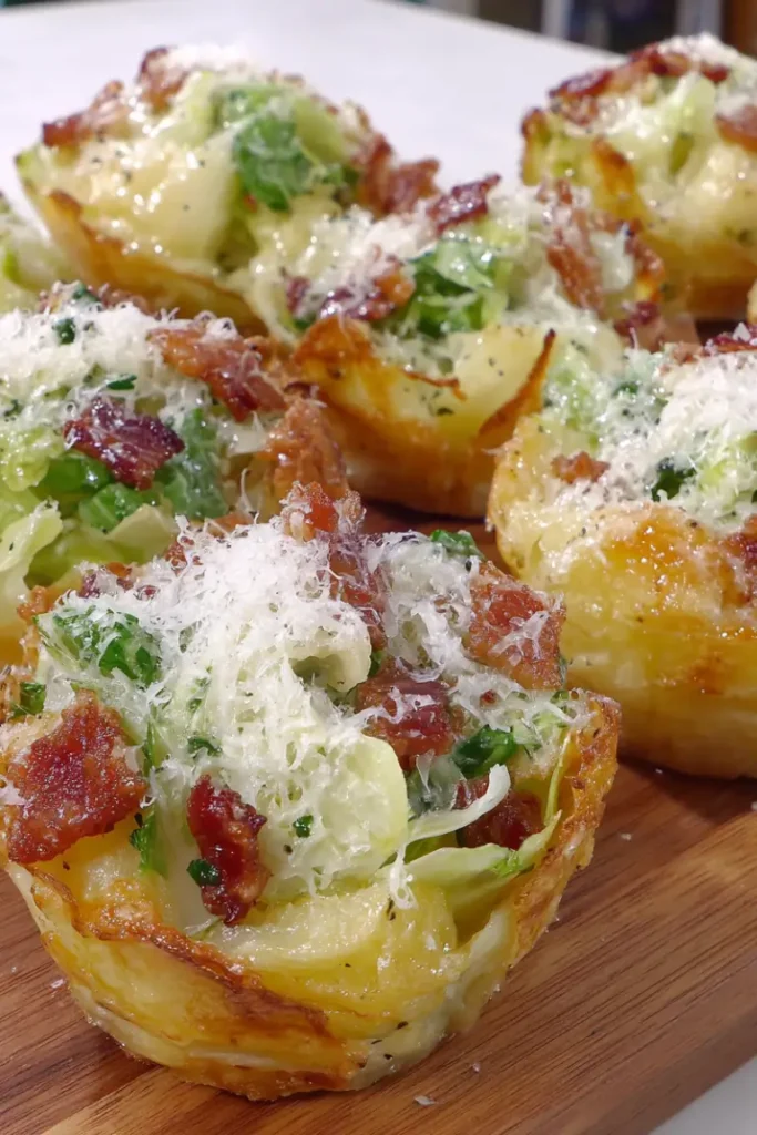 Easy Parmesan Salad Cups – Fresh & Crispy are proof that simple ingredients can create something truly special. The crispy cheese shell transforms a familiar Caesar salad into a party-ready appetizer that looks elegant and tastes incredible. With endless variations and simple preparation, this recipe is one you’ll return to again and again.