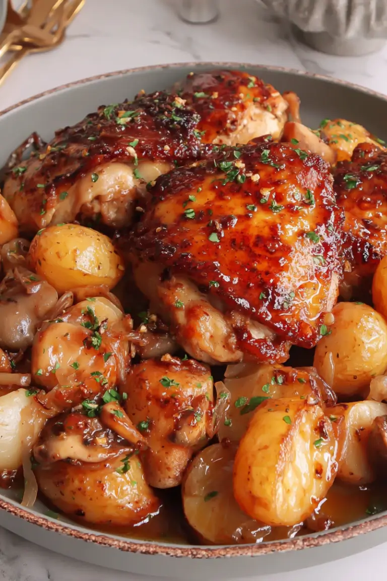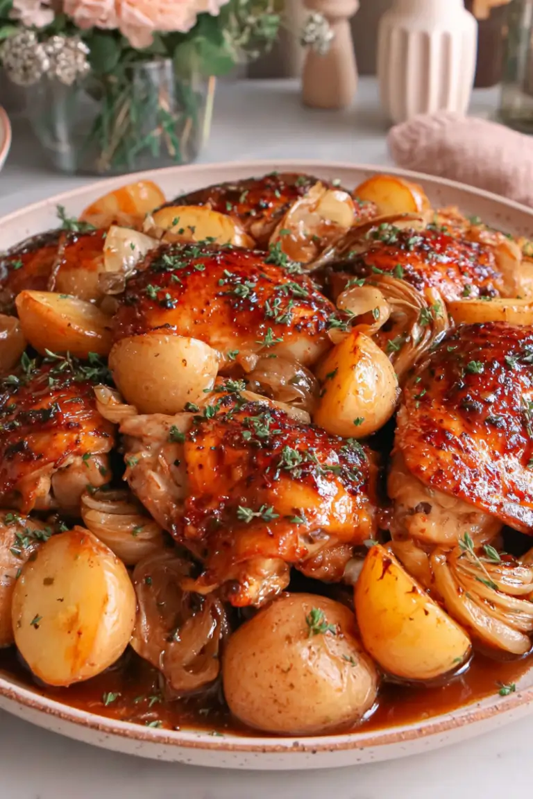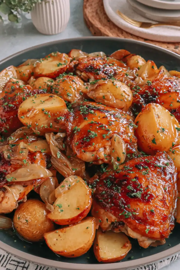 If you’re looking for a comforting, flavorful dinner that feels special but is simple enough for a weeknight, this Easy Roasted Apple Cider Chicken with Potatoes and Onions is exactly what you need. Juicy chicken, tender potatoes, and sweet onions roast together in one pan, all infused with warm apple cider and savory herbs for a meal that’s both cozy and impressive.