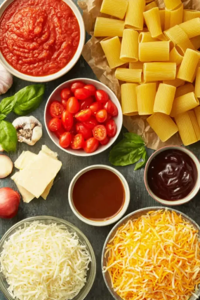 Ingredients for Roasted Tomato Rigatoni Bake with Cheese