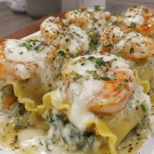 If you’re looking for a dish that’s both elegant and comforting, these Easy Shrimp and Spinach Stuffed Pasta Rolls are the perfect choice. Combining tender shrimp, fresh spinach, and creamy ricotta, all rolled into lasagna noodles and topped with a roasted red pepper cream sauce, this recipe is ideal for family dinners or impressing guests without spending hours in the kitchen.