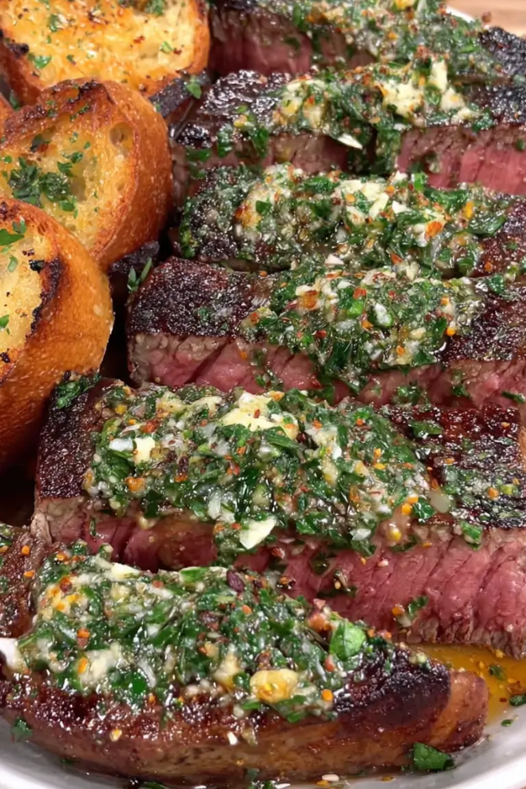 Remove the steaks from heat and let them rest for 2–3 minutes. This allows the juices to redistribute, ensuring a tender, juicy steak. Brush generously with the prepared garlic butter before serving.