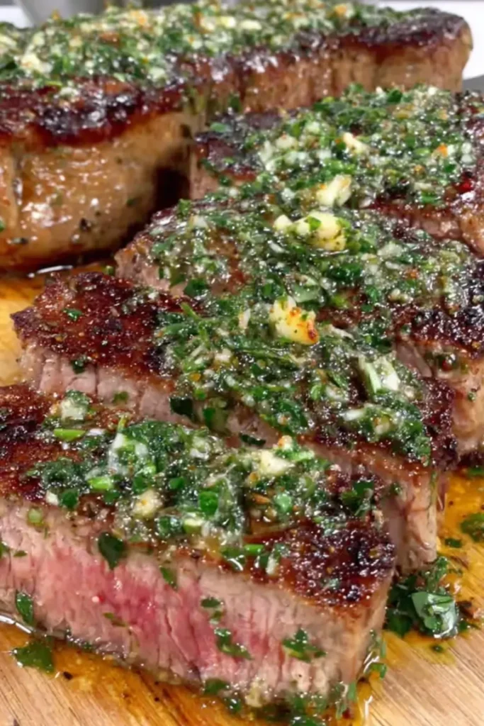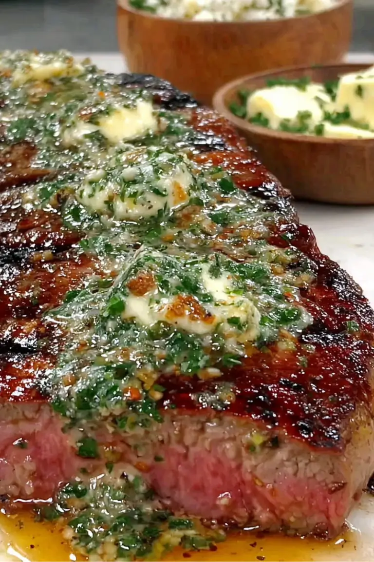 - Remove the steaks from heat and let them rest for 2–3 minutes. Brush generously with the prepared garlic butter before serving.