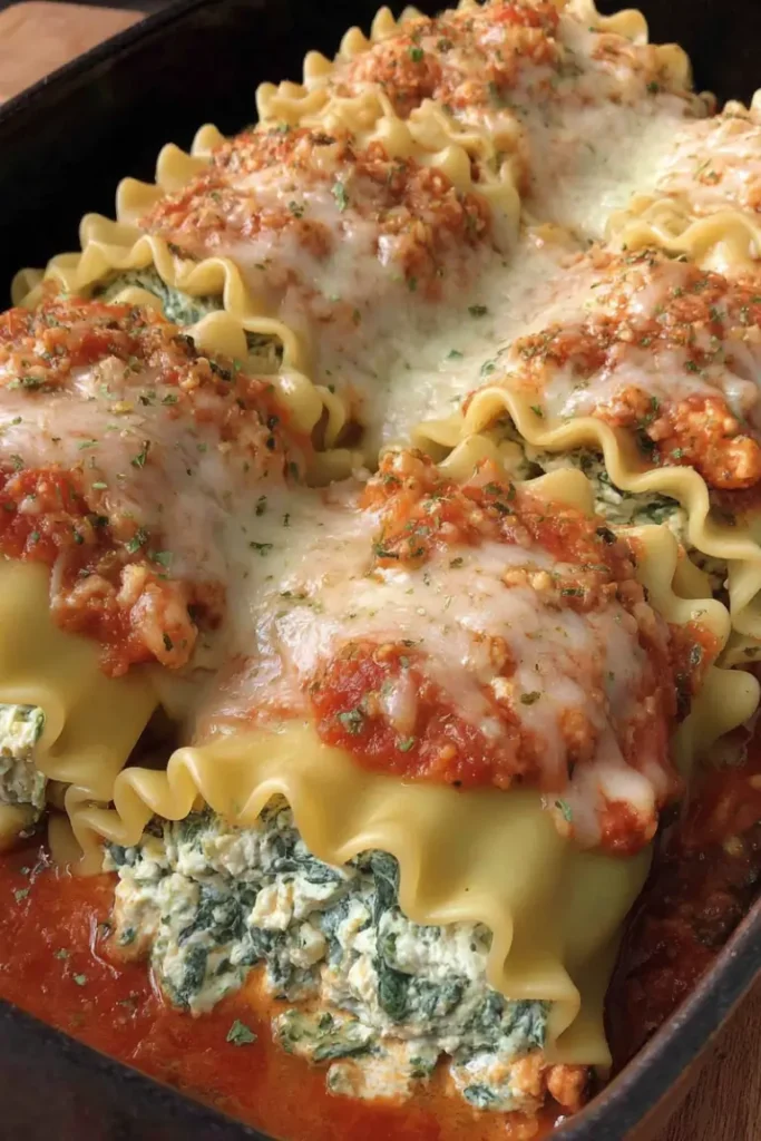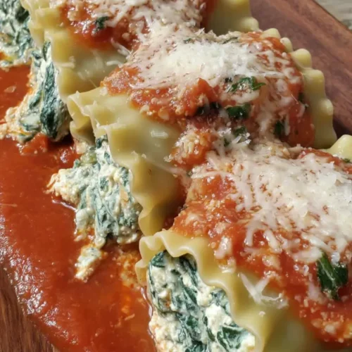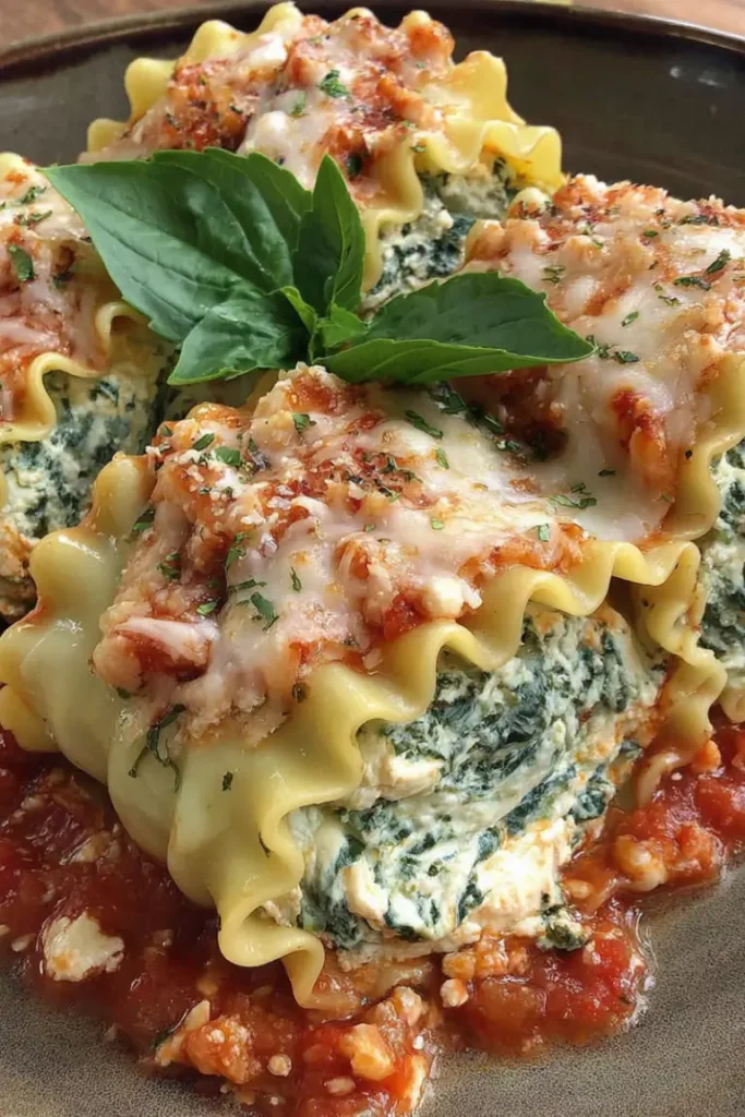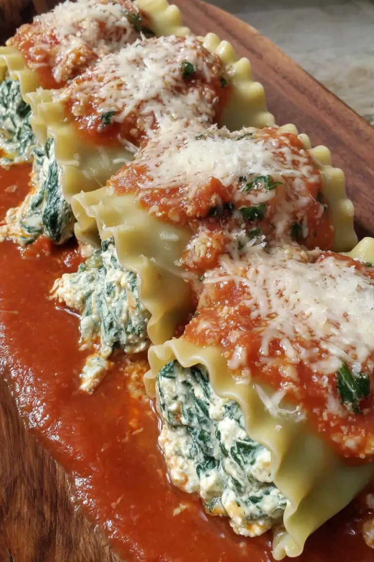 Spinach Lasagna Roll-Ups are a comforting Italian-inspired dish made with creamy ricotta, mozzarella, and Parmesan cheese blended with chopped spinach, rolled inside tender lasagna noodles, and baked in rich marinara sauce. Perfectly portioned and easy to serve, they’re ideal for weeknight dinners or special family meals.