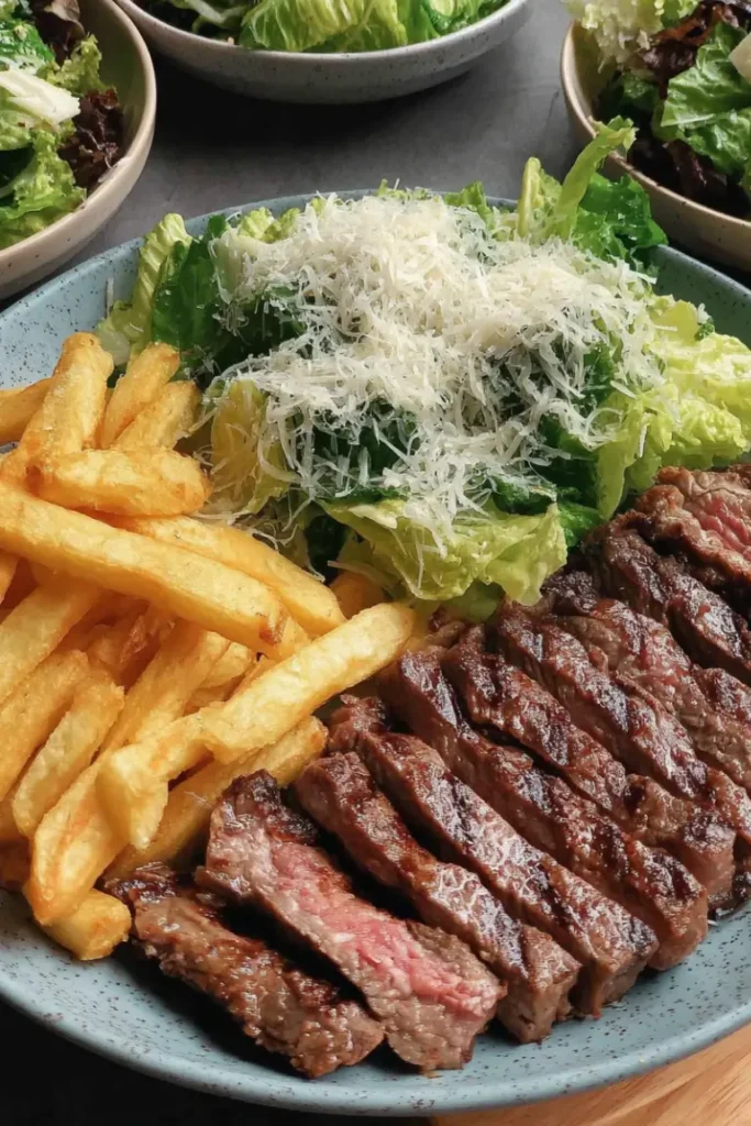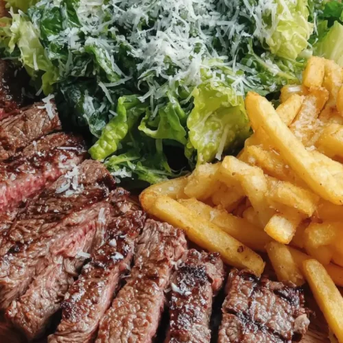 Easy Steak Frites with Crispy Fries and Caesar Salad is a timeless meal that combines comfort, flavor, and elegance. With its juicy steak, golden fries, and refreshing salad, it offers a complete dining experience that feels both indulgent and balanced.