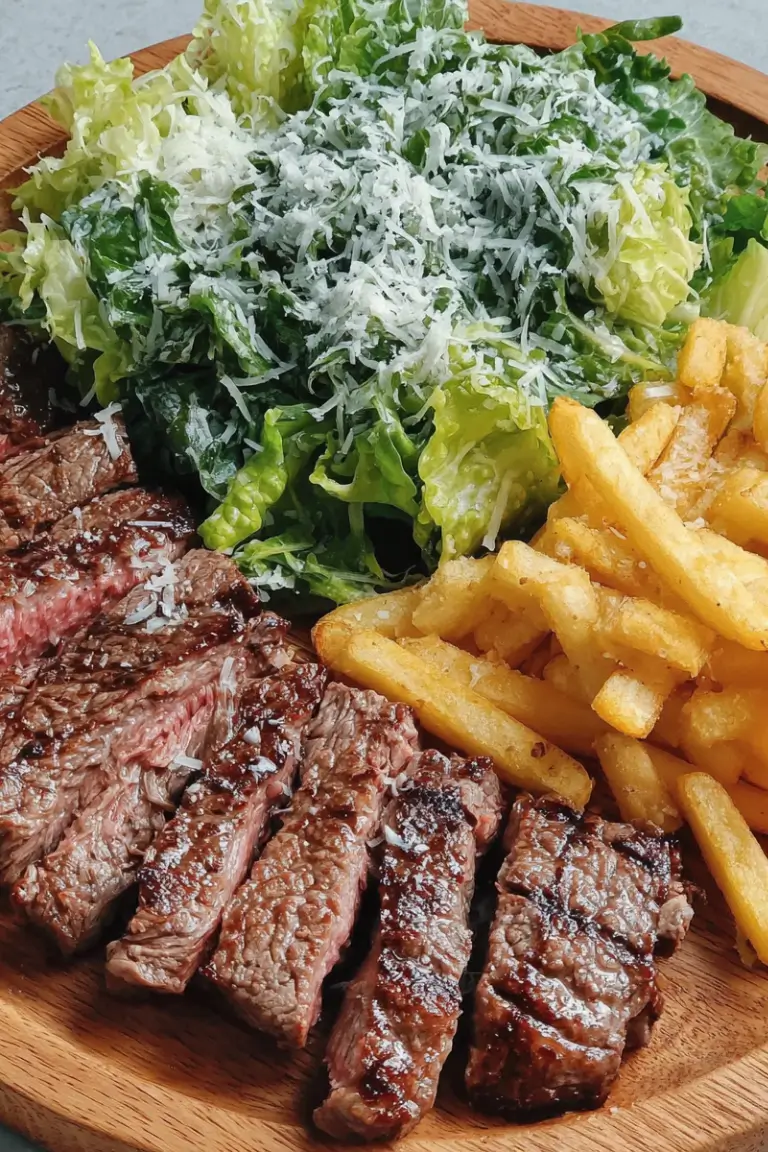 Easy Steak Frites with Crispy Fries and Caesar Salad is a timeless meal that combines comfort, flavor, and elegance. With its juicy steak, golden fries, and refreshing salad, it offers a complete dining experience that feels both indulgent and balanced.