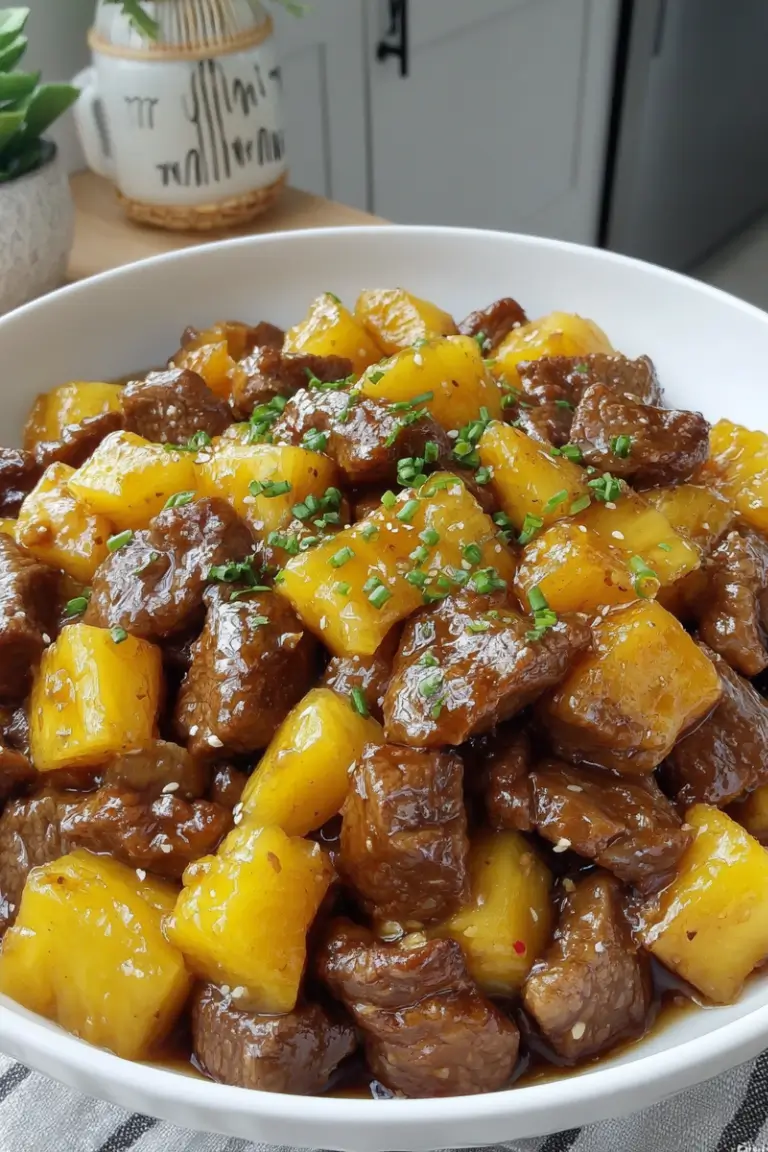 If you’re craving a dinner that’s sweet, savory, and bursting with tropical flavor, this Easy Sweet and Sour Pineapple Beef Stir‑Fry is exactly what you need. Tender, marinated beef combines with juicy pineapple in a flavorful stir‑fry sauce that’s perfect for a quick weeknight meal. Serve it over steamed rice or noodles for a vibrant, satisfying dish your whole family will enjoy.