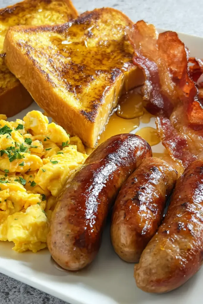 The Easy Ultimate Breakfast Platter with French Toast is the perfect way to start your day with a satisfying mix of sweet and savory flavors. This all-in-one breakfast combines golden French toast, fluffy scrambled eggs, crispy beef or turkey bacon, and juicy halal sausages—creating a comforting meal that feels both indulgent and balanced.