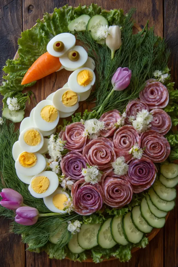 • Make-Ahead Tips: Pre-slice eggs and prepare salami roses separately; assemble on the day of the event.