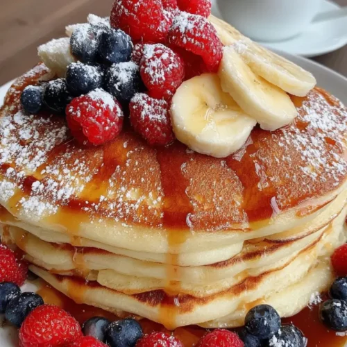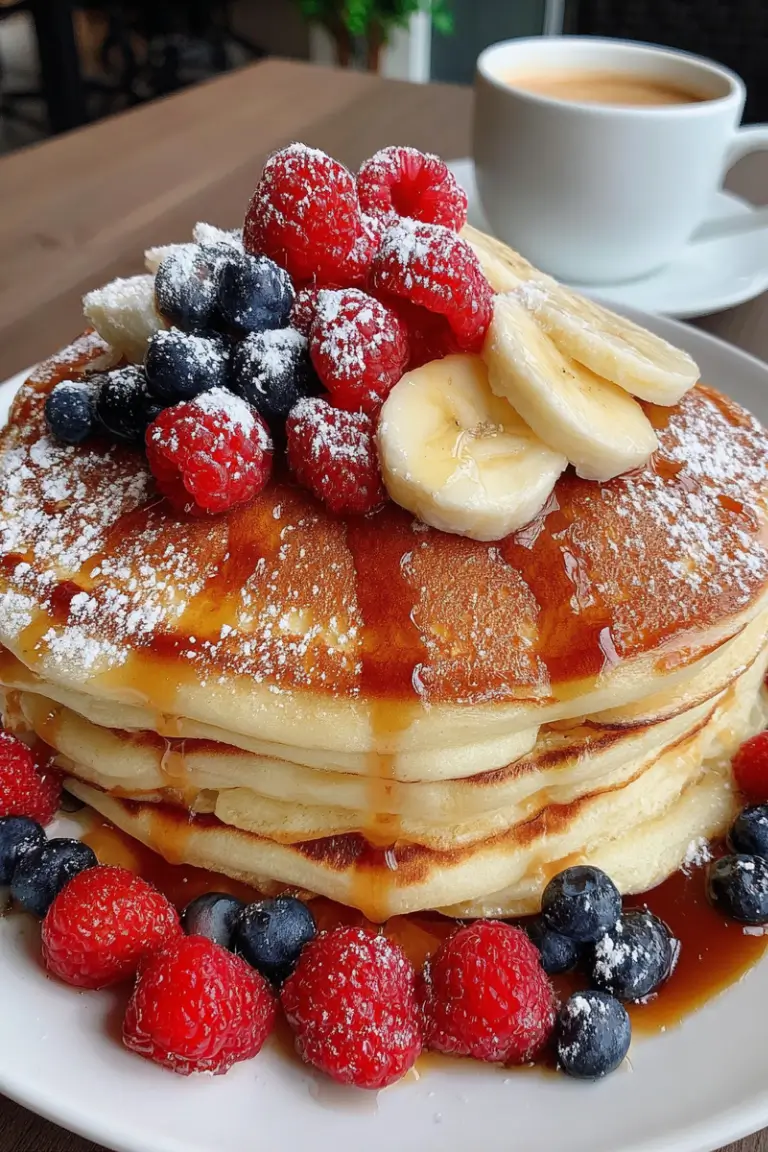 These fluffy buttermilk pancakes with fresh berries are a breakfast classic done perfectly. Light, tender, and packed with flavor, they’re simple enough for a weekday treat but impressive enough for weekend brunch. With fresh fruit, a dusting of powdered sugar, and maple syrup, they become a show-stopping plate that everyone will love. Once you try this recipe, it will become your go-to for a cozy, delicious morning.