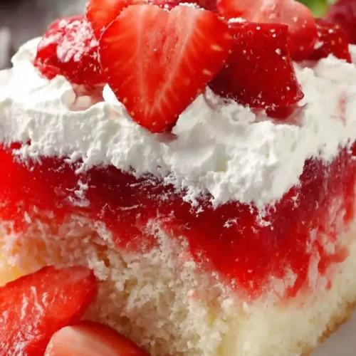 Fresh Strawberry Jello Poke Cake is a timeless dessert that combines ease, flavor, and visual appeal in one simple recipe. With its moist texture, vibrant strawberry infusion, and creamy topping, it’s a guaranteed hit for any gathering. Whether you stick to the classic version or try one of the variations, this cake is a delightful way to enjoy a sweet and refreshing treat.