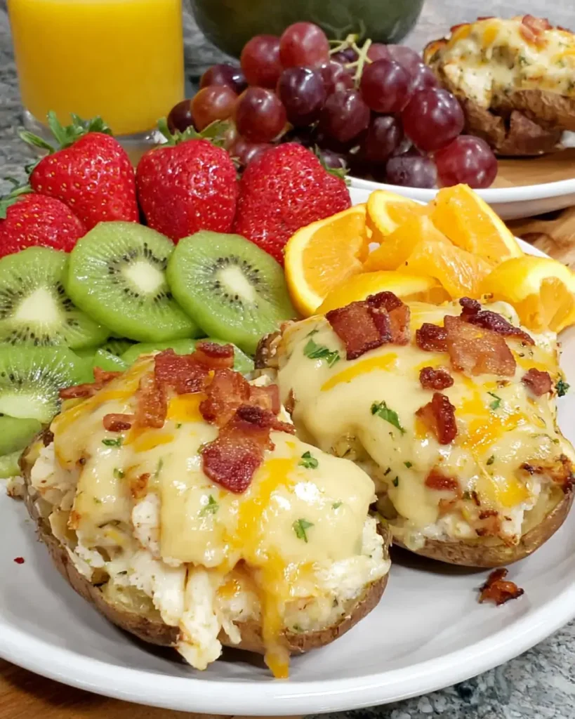 Easy Twice-Baked Loaded Breakfast Potatoes (With Fruit)