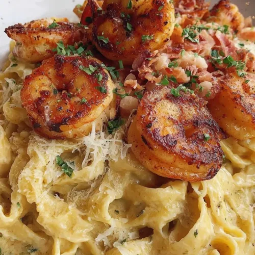 Quick Creamy Fettuccine Alfredo with Seared Shrimp is a rich and comforting pasta dish made with tender fettuccine tossed in a silky garlic-Parmesan cream sauce and topped with perfectly golden, juicy shrimp. Ready in about 30 minutes, it’s ideal for busy weeknights or an elegant homemade dinner.