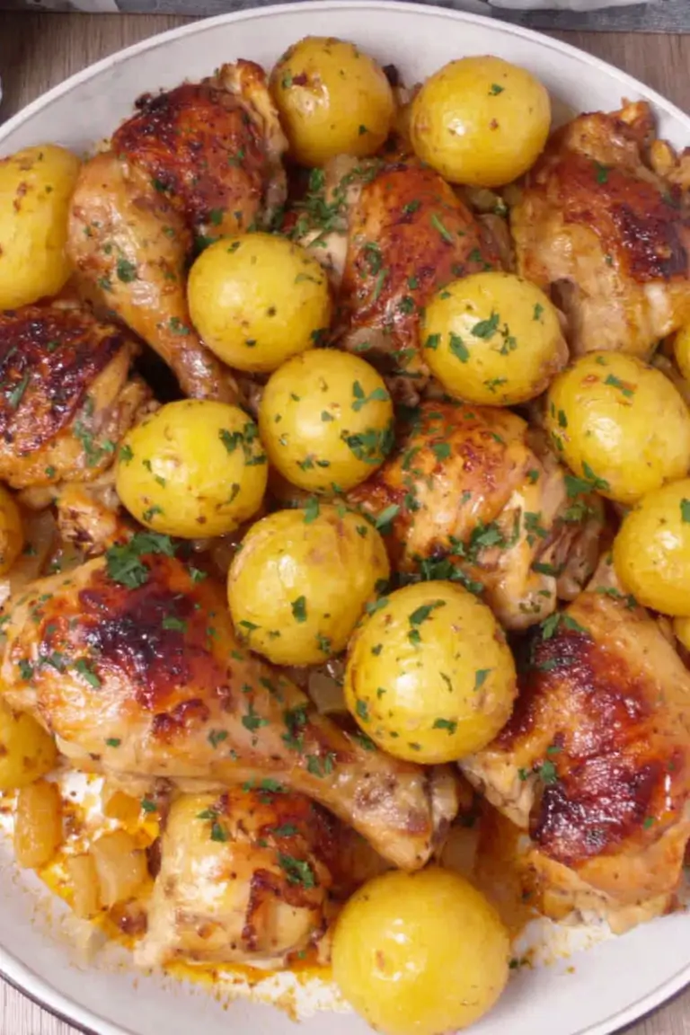 If you’re looking for a simple, flavorful dinner that requires minimal prep and cleanup, this Simple Lemon Garlic One Pan Chicken & Potatoes is the perfect choice. Juicy chicken thighs and drumsticks roast alongside golden baby potatoes in a bright lemon‑garlic sauce with warming spices. It’s a hearty, family-friendly meal that’s ready in just over an hour.
