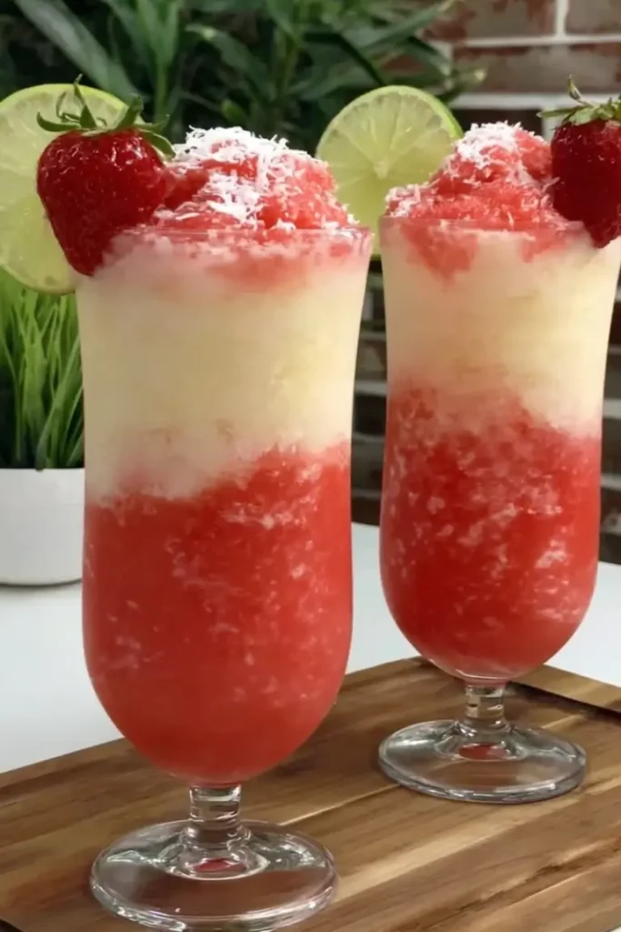 - Garnish with fresh strawberries, shredded coconut, or a lime wedge. Serve immediately while frozen and creamy.