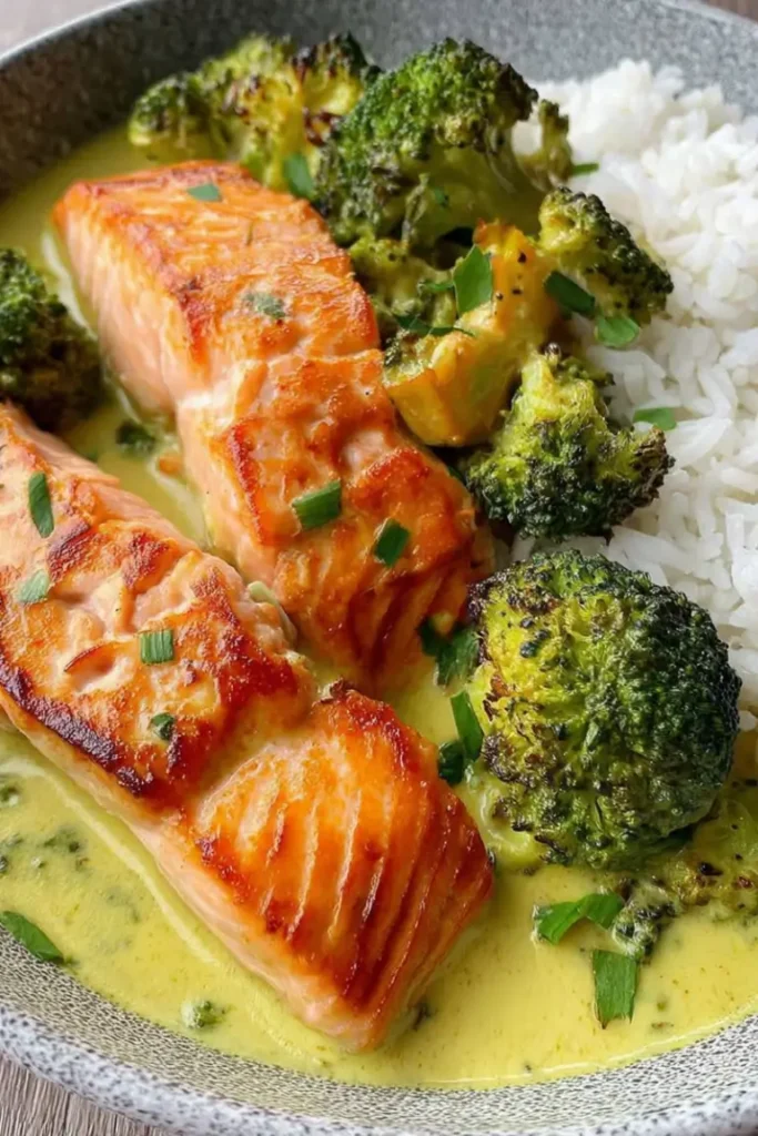 Thai-Inspired Coconut Curry Salmon with Broccoli