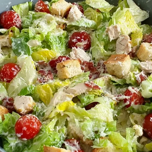 Ultimate Cherry Tomato Chicken Caesar Salad is proof that small changes can make a big impact. The sweet burst of cherry tomatoes balances the rich, garlicky dressing and savory chicken beautifully. It’s colorful, satisfying, and versatile enough for any season.