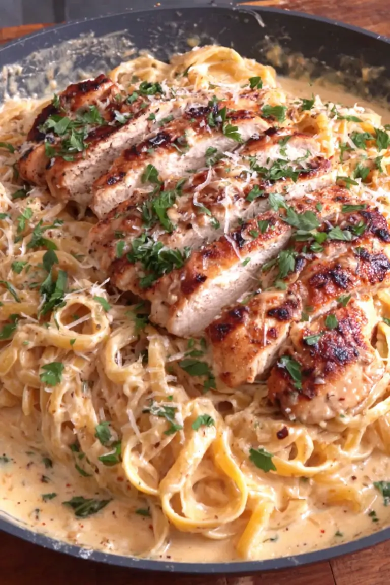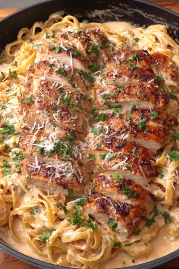 Ultimate Chicken Alfredo Fettuccine is the perfect comfort food when you want a rich, creamy pasta dish that feels restaurant-quality but is surprisingly easy to make at home. Tender pan-seared chicken breasts are served over silky fettuccine noodles coated in a luscious Parmesan cream sauce flavored with garlic, butter, and Italian seasoning. The result is a warm, satisfying meal that combines simple ingredients into a beautifully smooth and flavorful dish.