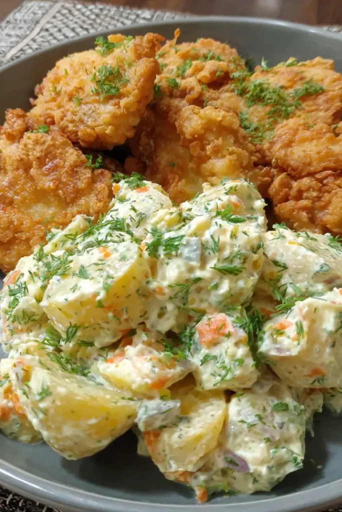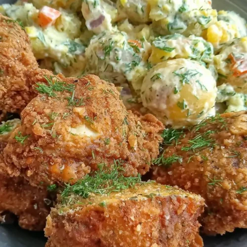 This Ultimate Crispy Fried Chicken with Creamy Dill Potato Salad recipe brings together all the elements of a perfect comfort meal—crispy, juicy chicken paired with a creamy, refreshing side. With simple ingredients and clear steps, it’s a recipe that delivers crowd-pleasing flavor every time. Whether for a family dinner, picnic, or special occasion, this combination is sure to impress and satisfy.
