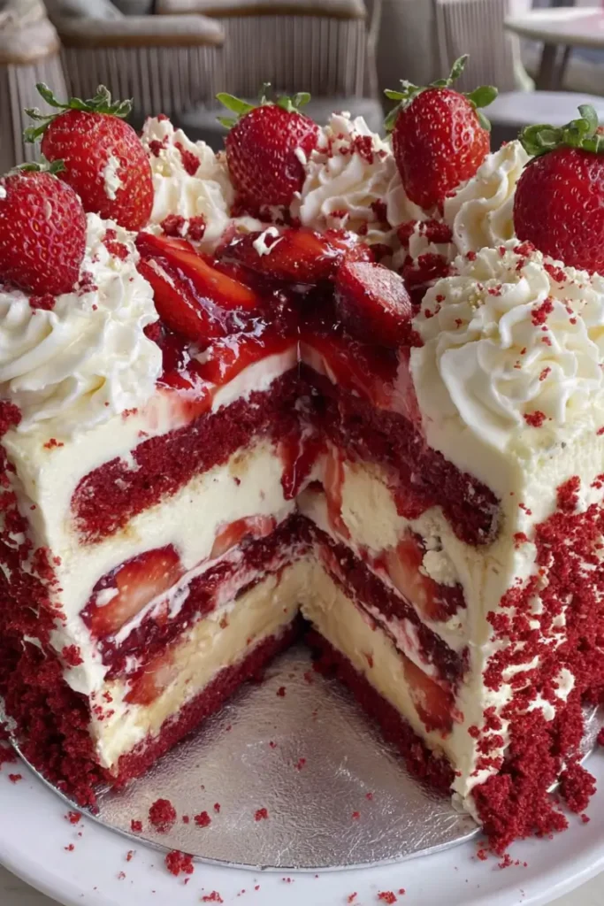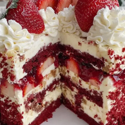 The Ultimate Red Velvet Strawberry Cheesecake Dessert is a showstopper that impresses both in taste and presentation. Its creamy red velvet layer paired with vibrant strawberry mousse and fluffy whipped cream topping makes it a perfect centerpiece for any special occasion. With simple ingredients and a step-by-step method, you can easily recreate this dessert at home, delighting friends and family alike.