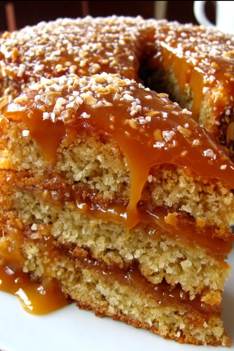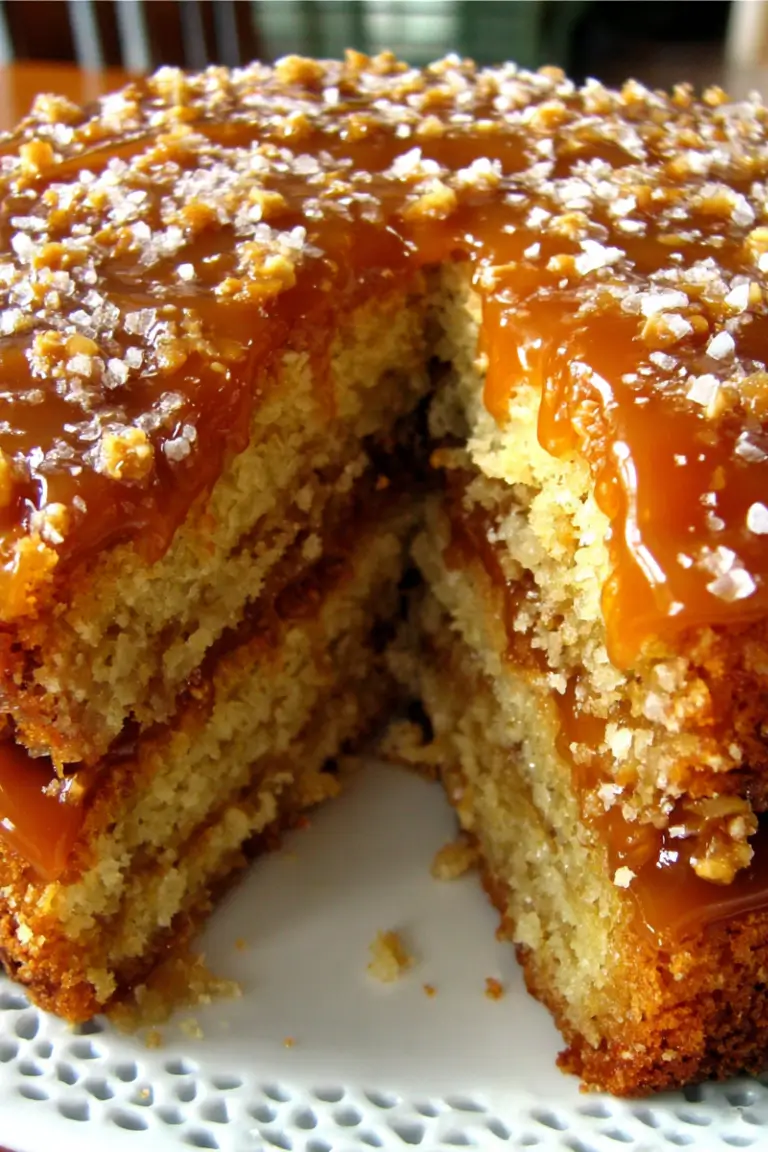 This cake is a triple-layered caramel masterpiece. Each layer is infused with rich homemade caramel, topped with buttery, fluffy Swiss meringue buttercream, and finished with a glossy salted caramel drizzle. A pinch of sea salt cuts through the sweetness, highlighting the deep caramel flavor. The cake is moist but firm enough to support tall layers, making it perfect for decorating or slicing for family gatherings.