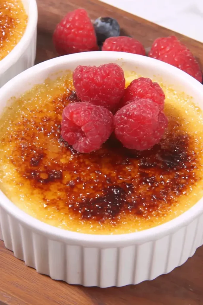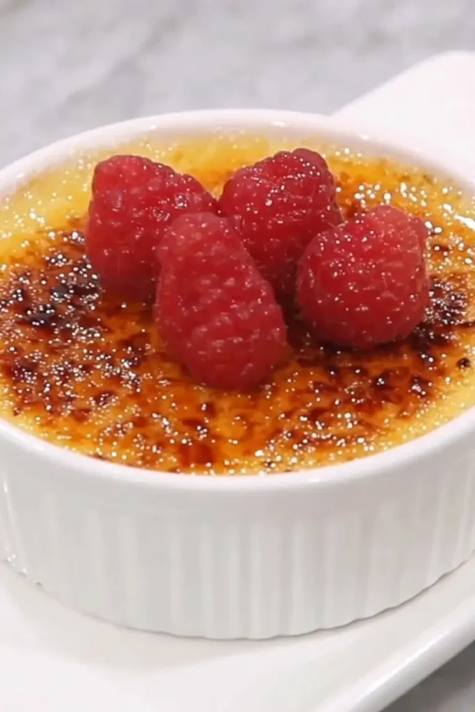 Ultimate Vanilla Crème Brûlée with Fresh Raspberries